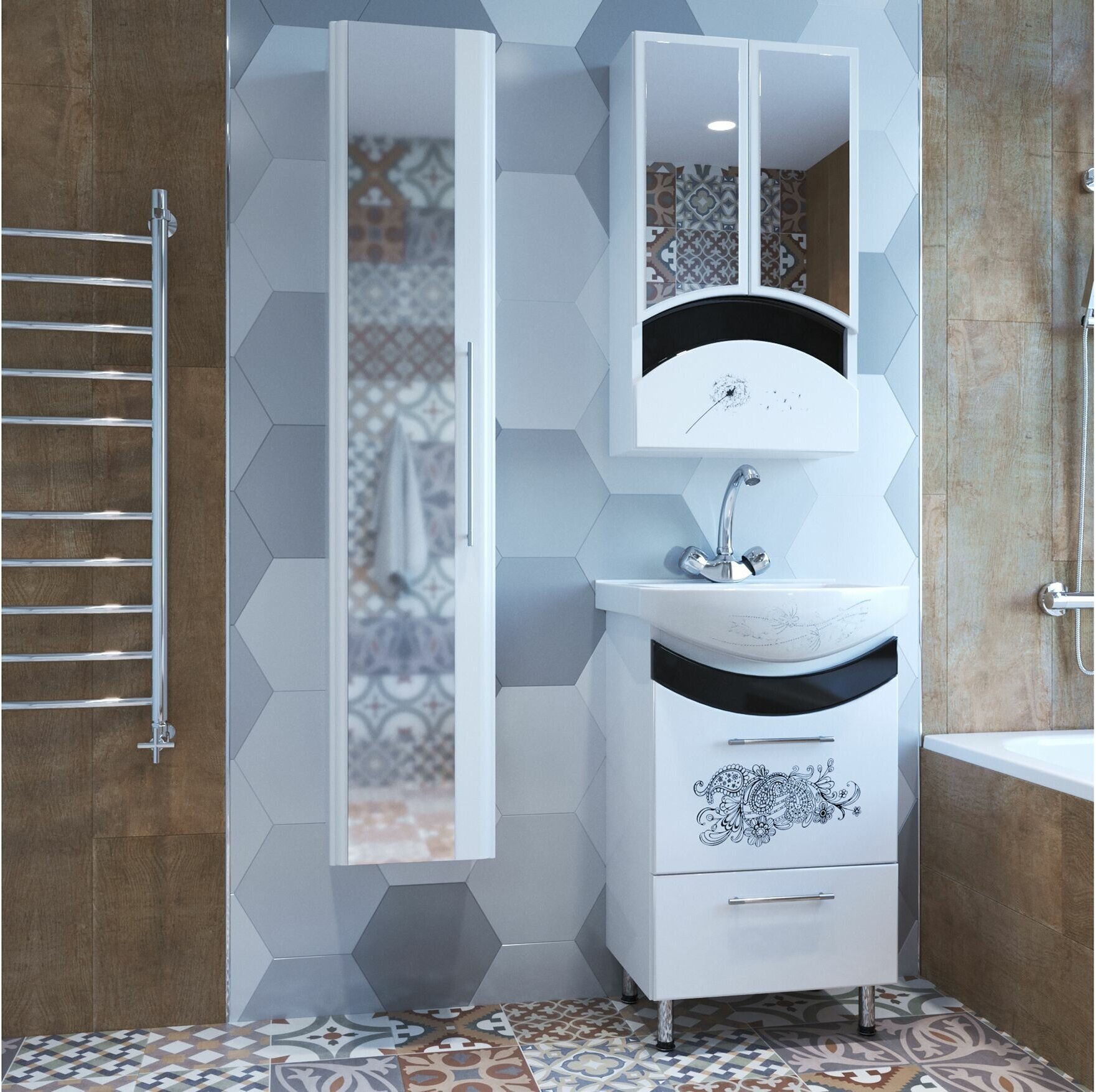 Тумба под раковину Mixline Радуга 50 528040 Белая Черная Цветы