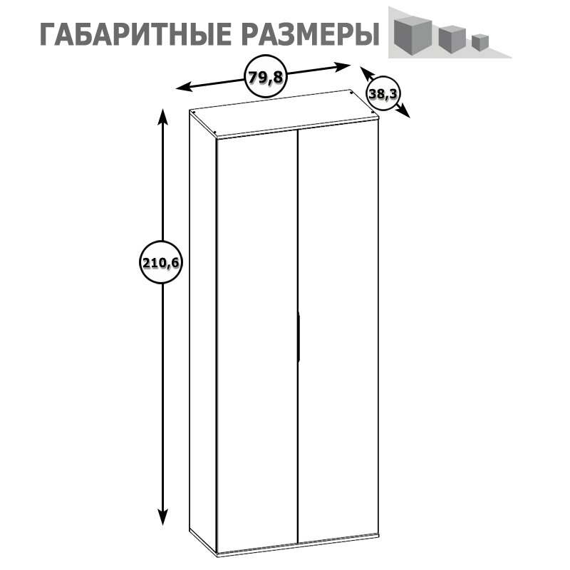 Шкаф для одежды Mobi - удобный двустворчатый шкаф с распашными дверками.Внутри шкафа располагается штанга для вешалок и верхня и нижняя полки.Поставляется в разобранном виде.В комплекте поставки изделия - инструкция по сборке и сборочная фурнитура.Корпус и фасад выполнены из ламинированной ДСП 16 мм. Опоры - серый пластик, лицевая фурнитура - металл.