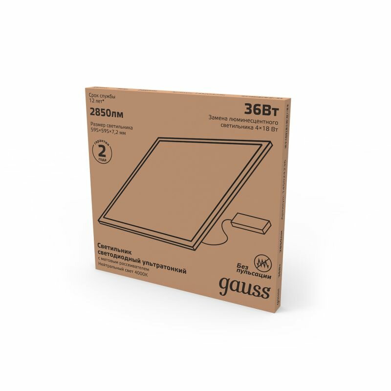 Светодиодная ультратонкая панель Gauss с температурой свечения 4000К - современный высокотехнологичный светильник, который обеспечивает равномерную засветку без слепящего эффекта.