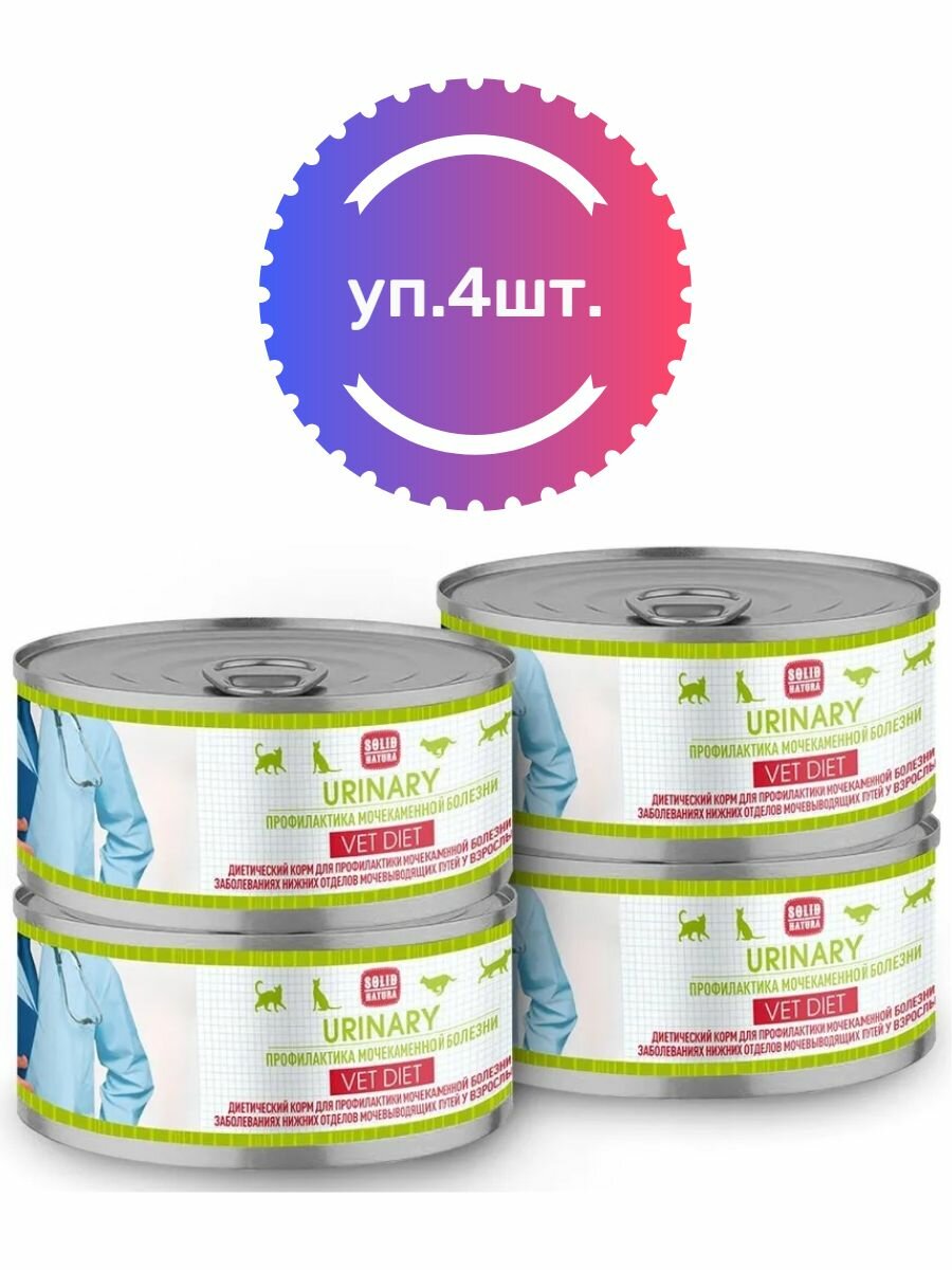 Solid Natura VET Urinary. Влажный диетический корм Солид Натура предназначен для взрослых кошек всех пород для профилактики мочекаменной болезни и при заболеваниях нижних отделов мочевыводящих путей. По ингредиентному составу относится к кормам суперпремиум класса.