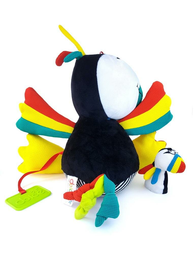 Этот милый сделан из невероятно мягкого материала, чтобы сделать его привлекательным и идеальным для объятий. В сумочке есть маленькая кукла, которую можно использовать для рассказывания историй. У него огромные извилистые крылья, качалки на ногах и прорезыватели для колец.