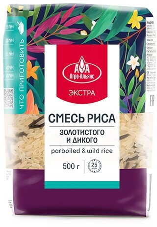 Смесь золотистого и дикого риса "Агро-Альянс Экстра" является одним из самых вкусных и полезных продуктов. Привлекательность смеси обусловлена также оригинальным внешним видом гарнира. Контраст между белыми и коричневыми зернами риса выглядит на тарелке утонченно и аппетитно. Благодаря предварительной обработке дикого риса (скарификации) время его варки совпадает со временем приготовления пропаренного риса. Смесь прекрасно сочетается с мясными и рыбными блюдами, а также с морепродуктами. Крупу тщательно про
