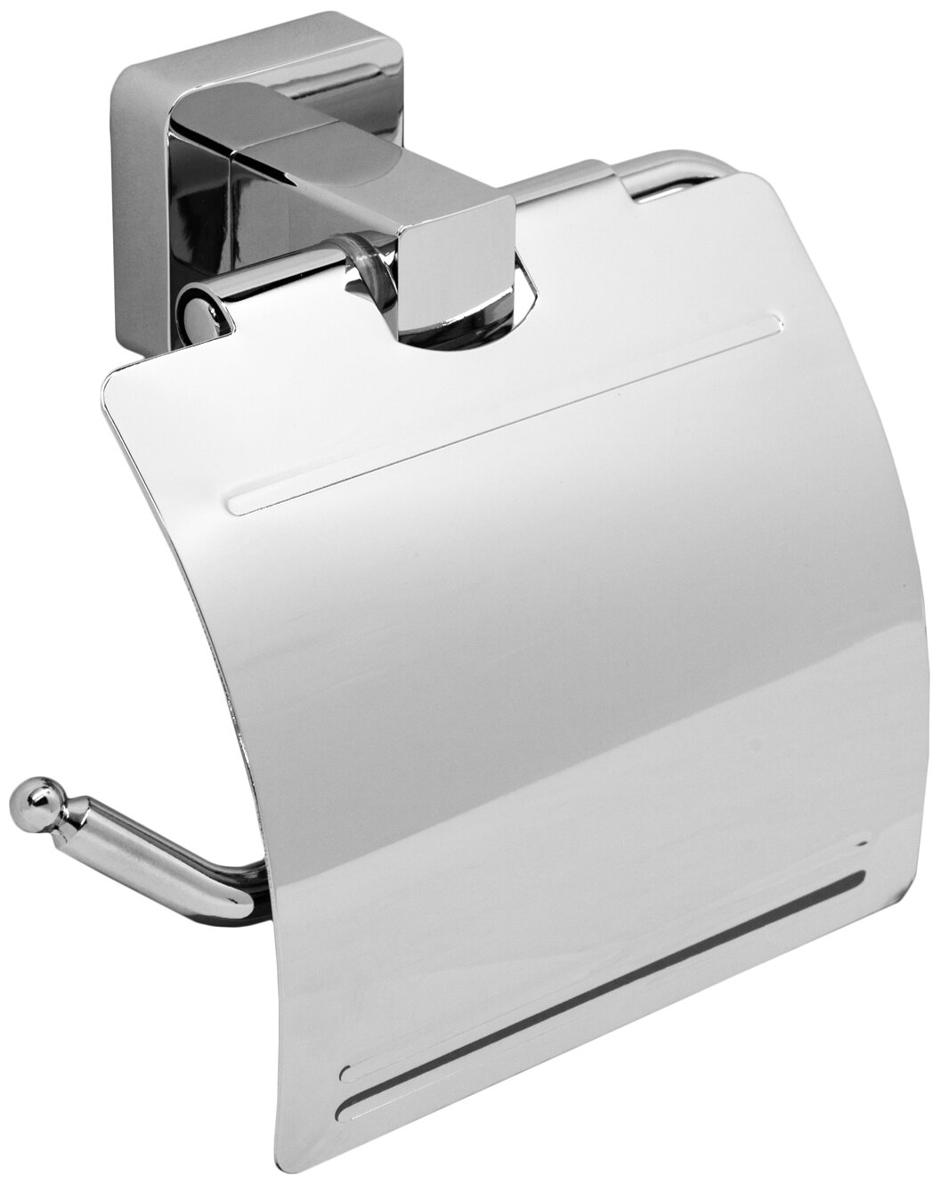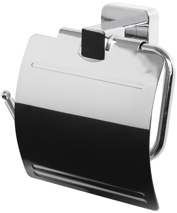 Держатель туалетной бумаги с крышкой. Металл, хромоникелевое покрытие, уплотнительные пластиковые кольца