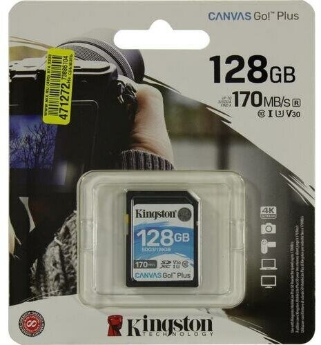 Карта памяти Kingston Canvas Go! Plus SDXC – производительное и надежное устройство хранения с пожизненной гарантией от производителя. Она предназначена для совместного использования с профессиональными камерами. Скорость передачи данных в пределах 170 Мб/с позволяет ускорить рабочий процесс с мультимедийным контентом. Благодаря поддержке стандартов U3 и V30 обеспечивается запись качественного видео в разрешении 4K и создание серийных фотоснимков с плавным переходом.
