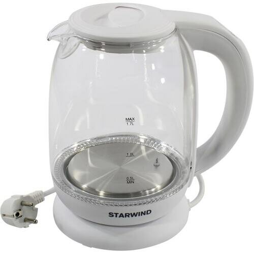 Чайник электрический Starwind белый, объём 1.7л, мощность 2200Вт, материал корпуса: стекло