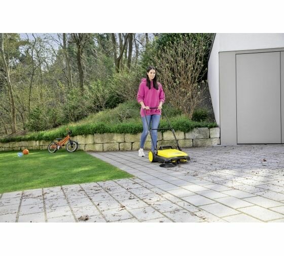 Подметальная машина S 4 для круглогодичного применения на небольших и узких площадях и обеспечения чистоты по всей поверхности, до самого края. Объем мусоросборника 20 л, боковая щетка и ширина заметания 510 мм. Цветочные лепестки весной, песок летом, листва осенью или противогололедные средства зимой - эффективная и эргономичная подметальная машина S 4 от Karcher весь год заботится о чистоте вокруг дома и в саду, наводя порядок в рекордные сроки. Благодаря мощному заметающему валику, боковой щетке и общей рабочей ширине 510 мм она с легкостью справляется с уборкой площади до 1800 м2 за час. Собранный мусор перемещается непосредственно в 20-литровый контейнер. Длинная щетина боковой щетки обеспечивает тщательную уборку до самого края. Рукоятка с плавной регулировкой высоты оптимально подстраивается под рост пользователя. Благодаря байонетному соединению при регулировке высоты больше не требуется использовать винты. Достаточно наступить на отведенное для этого место на раме машины, чтобы легко сложить ее и перенести в другое место, что обеспечивает и компактность хранения. Уникальным является и размещение боковой щетки без использования инструмента - благодаря этому машина готова к работе мгновенно. Мусоросборник легко вынимается, его можно аккуратно отставить в сторону и удобно опустошить без контакта с грязью.
