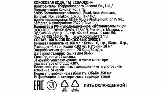| Состав | 100% кокосовая вода |