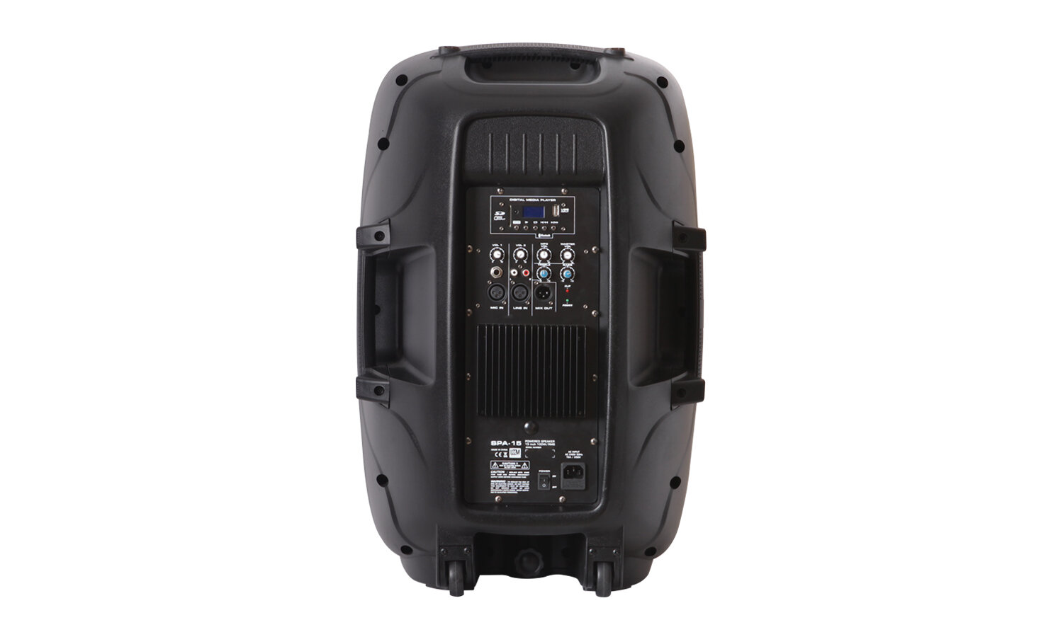 Leem – активная акустическая система на две полосы. 15-дюймовый СЧ/НЧ-динамик с 2-дюймовой звуковой катушкой в сочетании с компрессионным драйвером на 1 дюйм обеспечивают частотный диапазон от 50 до 20 000 (+/-3 дБ). Кроссовер имеет частоту среза 2,5 кГц. Звуковое давление акустики доходит до 120 дБ. При нагрузке 4 Ом номинальная мощность системы – 100 Вт, а максимум составляет 200 Вт. Встроен MP3-плеер с экраном ЖК и четырьмя кнопками для управления. Также на задней панели находятся порт USB, слот для SD карты, интерфейс Bluetooth, входы на разъемах XLR, джеках и RCA. Здесь же помещены регуляторы и индикаторы: ручки громкости, включая общую, MP3, микрофонного и линейного входов, а также ручки ВЧ и НЧ, индикаторы питания и клипа. Корпус изготовлен из ABS-пластика и оборудован стаканом 35 мм. Еще есть ручки и колесики (сзади), что облегчает транспортировку.