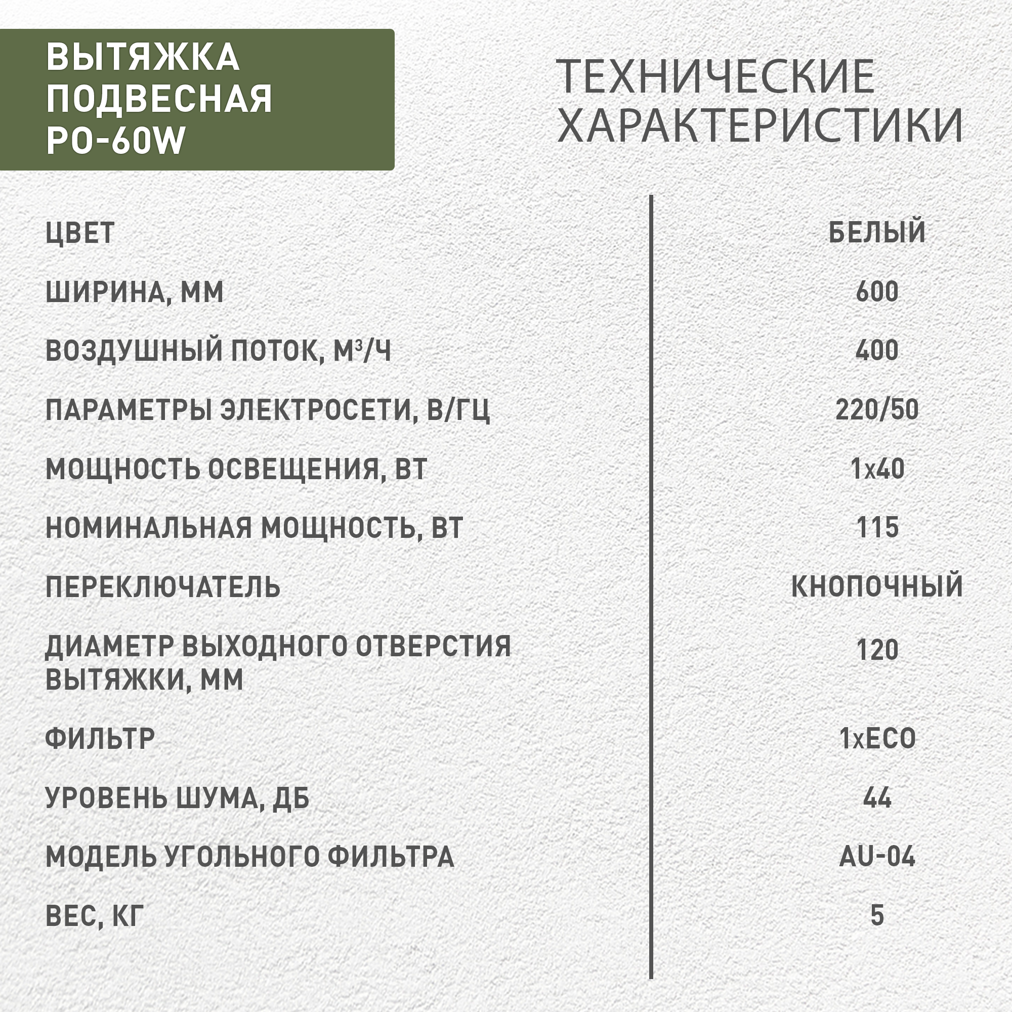 | Комплект поставки | Кухонная вытяжка-1 шт. Монтажный комплект-1 шт. Обратный клапан-1 шт. Инструкция по эксплуатации-1 шт. |