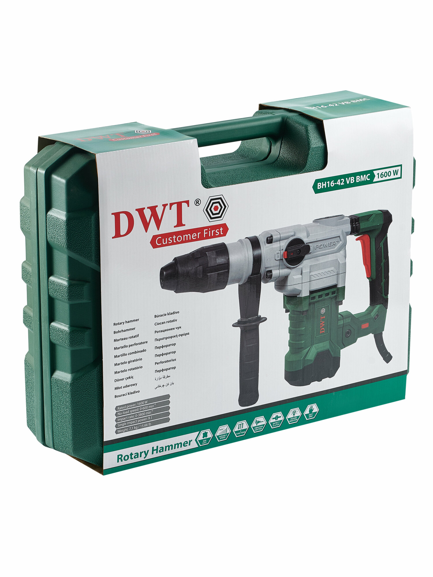 | Прочие особенности и свойства | Регулировка частоты вращения - для точной настройки под разные материалы,Предохранительная муфта для защиты оператора от эффекта отдачи,Удобная дополнительная рукоять DWT SDS-MAX BH16-42 VB BMC,Система защиты от вибрации для комфортной работы,Сетевой индикатор питания показывает что инструмент подключен к сети и готов к работе |