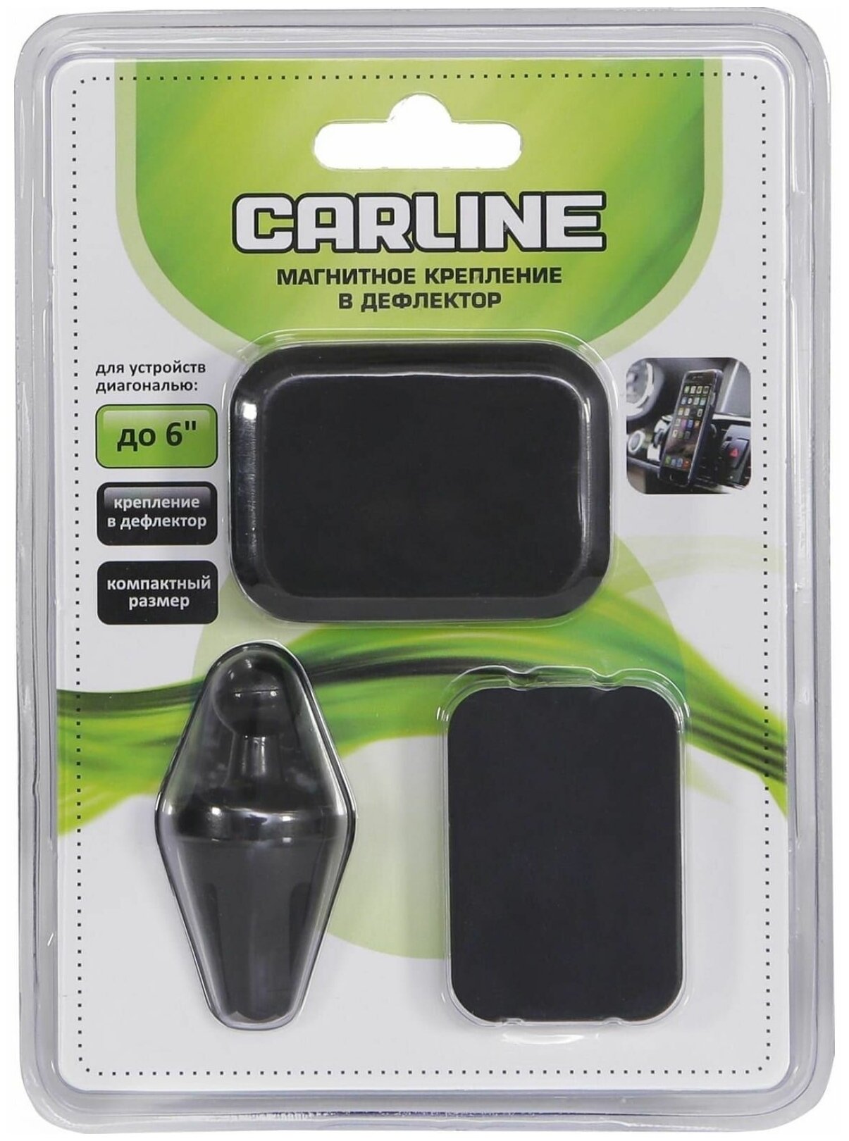 Автомобильный держатель Carline на магните в дефлектор. Для крепления в автомобиле сотовых телефонов, смартфонов, навигаторов и других устройств диагональю до 6”.