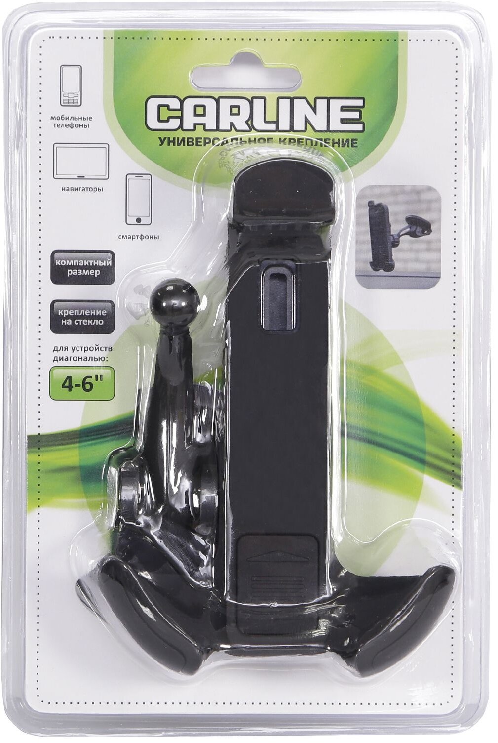 Универсальный автомобильный держатель Carline с трехточечным зажимом. Устанавливается на стекло или торпедо автомобиля. Предназначен для крепления сотовых телефонов, смартфонов, навигаторов и других устройств диагональю от 4” до 6”.