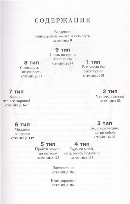 Отличная психологическая теория. Книга содержит полную информацию по Эннеаграмме - психологической модели разных типов личности. Причем она отличается от других классификаций своей обширностью и фундаментальным подходом. Здесь учитываются такие вещи как потребности, эмоции, страхи. Также автор рассказывает о том, как ведет себя человек того или иного типа в стрессе или в комфорте, какой он во взаимоотношениях с другими типами. В общем, много всего полезного, книга читается легко и с интересом)