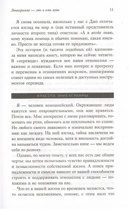 Интересная, понятная книга, полная прикладной информации. Я слышала об Эннеаграмме и решила подробнее изучить эту систему классификации личности. Книга очень полезная в том плане, что она раскладывает все по полочкам, не возникает путаницы, хотя Эннеаграмма – довольно масштабная теория с кучей нюансов. Но автор помогает со всем разобраться) Я успешно определила свой тип, прочитала все про свои особенности. Также можно дать эту книгу близкому человеку – он не только узнает лучше себя, но и может почитать советы, как более эффективно строить взаимоотношения с вами)