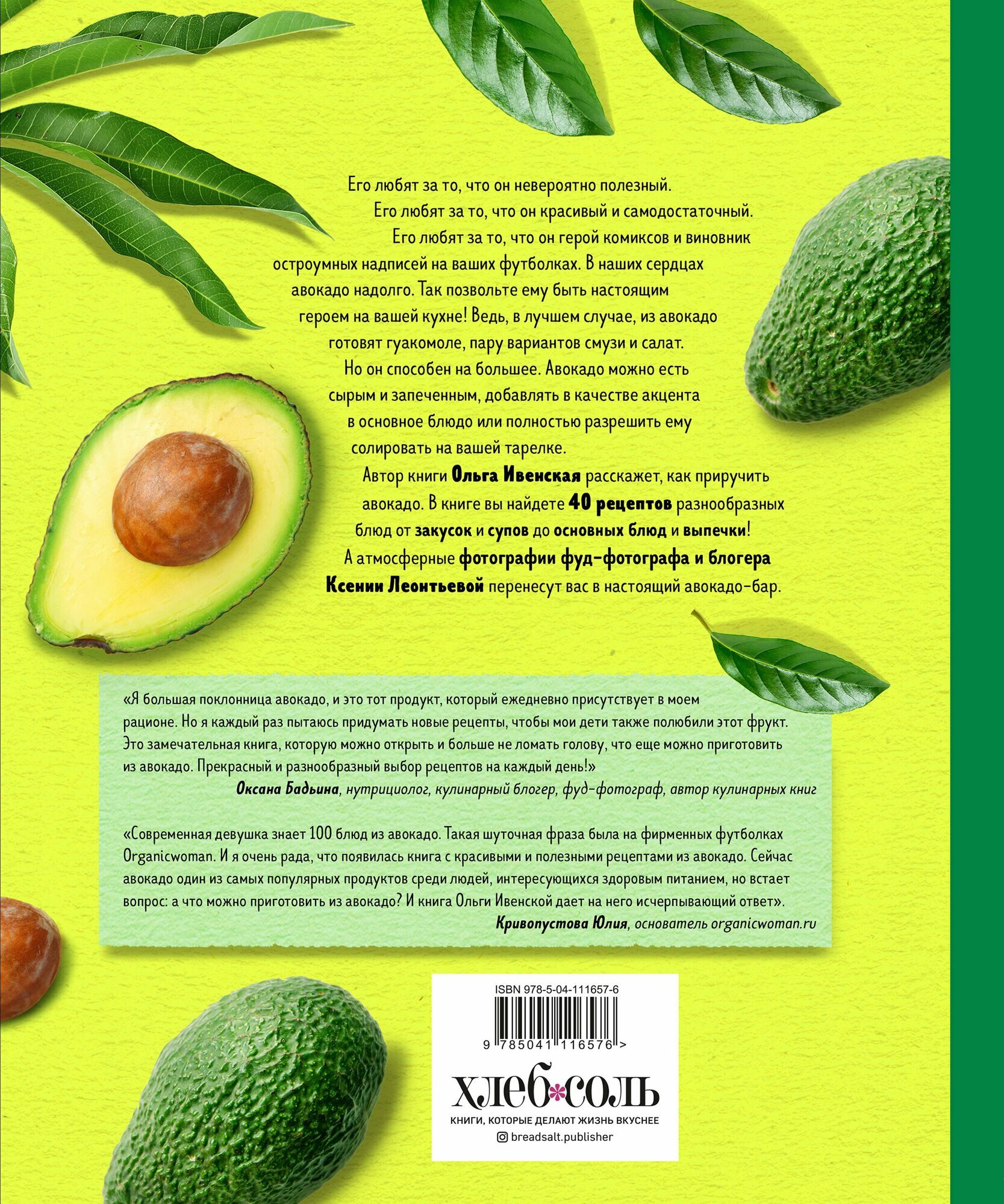Сколько блюд из авокадо можно приготовить? Его можно есть ложкой, скажете вы, приготовить гуакомоле и добавить в салат. И все? На самом деле нет. Авокадо может стать настоящим героем на вашей кухне и Ольга Ивенская расскажет вам как. Суфле, холодный суп-пюре, чили кон карне, паста, бургеры и даже чизкейк можно приготовить с авокадо! Его можно есть сырым и запеченным, добавлять в качестве акцента в основное блюдо или полностью разрешить ему солировать на вашей тарелке. В книге вы найдете 40 рецептов разнообразных блюд от закусок и супов до основных блюд и выпечки! А атмосферные фотографии фуд-фотографа и блогера Ксении Леонтьевой перенесут вас в настоящий авокадо-бар.