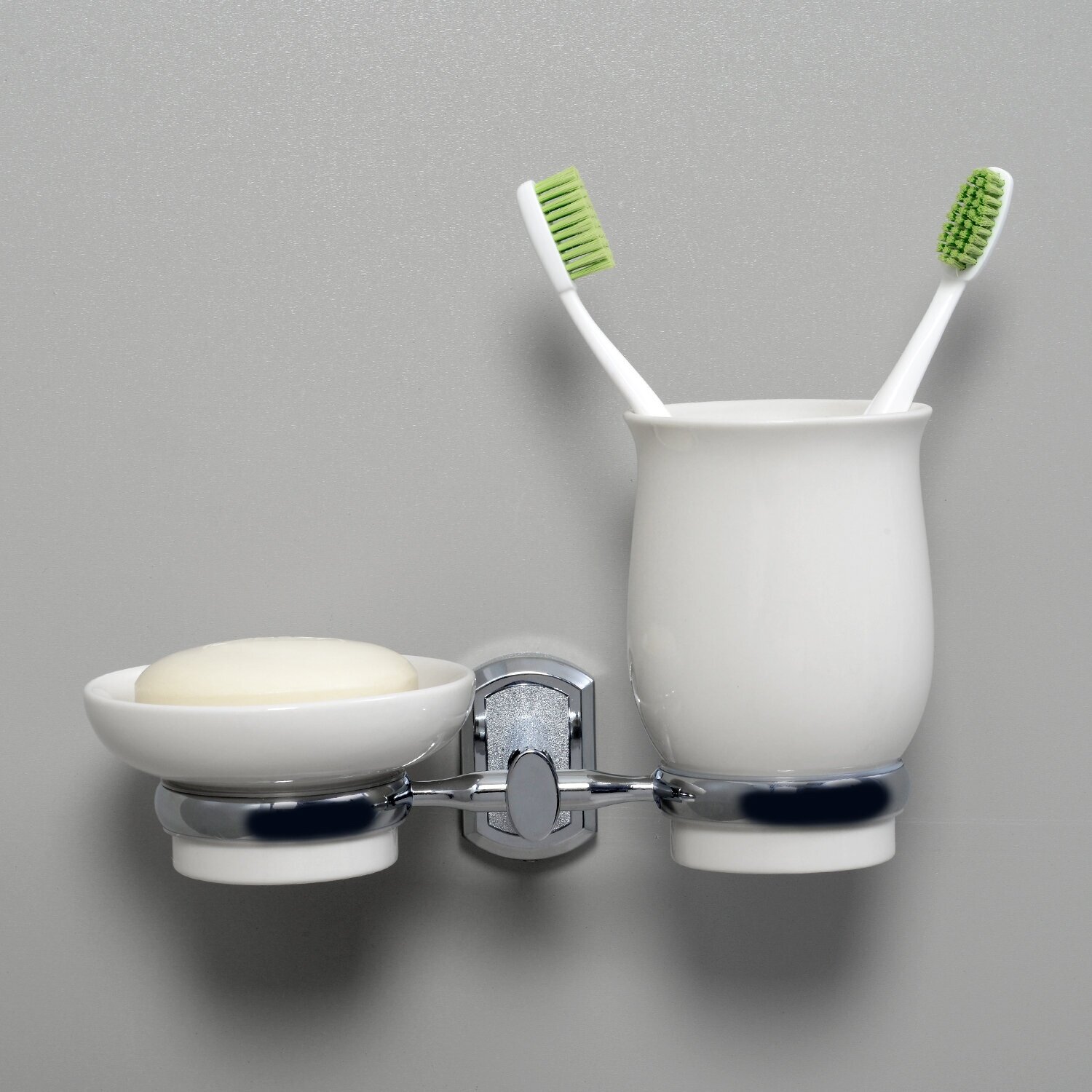 В комплекте поставки: стакан, мыльница, двойной держатель.