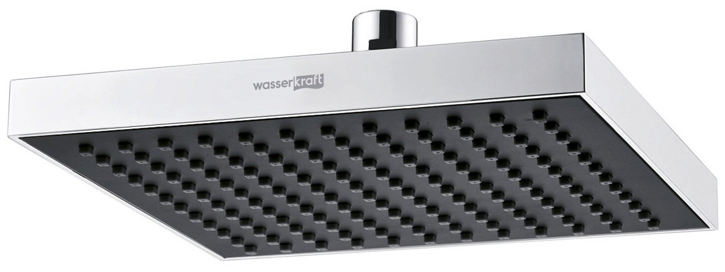 - Верхний душ: черный 200х200 мм, 144 форсунки, ABS-пластик.