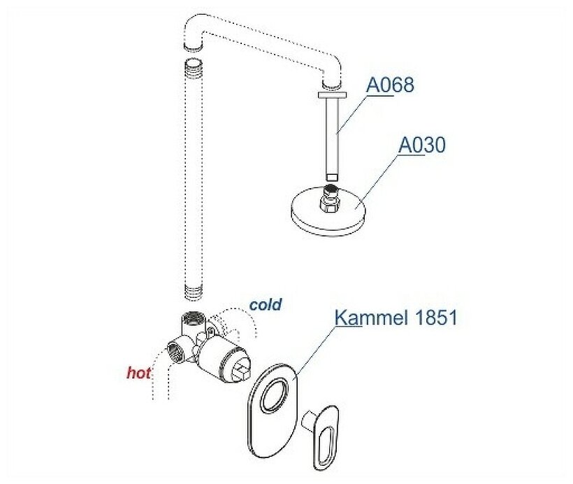- Смеситель для ванны и душа Kammel 1851 (внешняя и внутренняя часть).