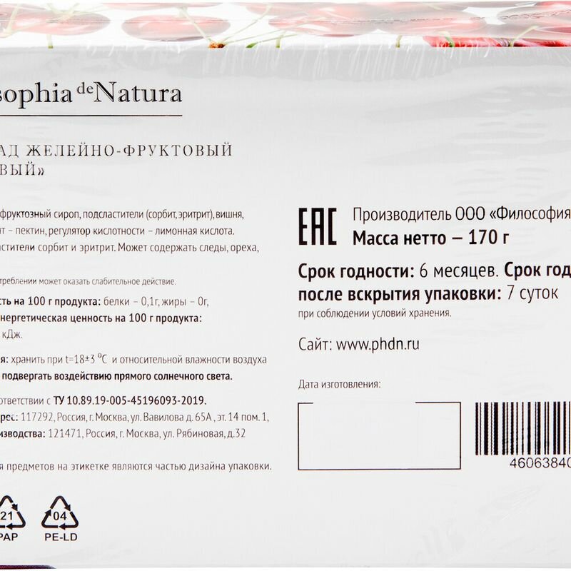 Мармелад Philosophia de Natura желейный с вишней 170г