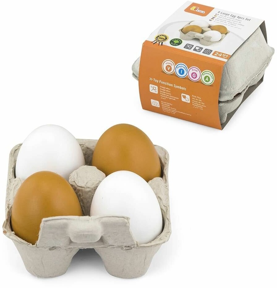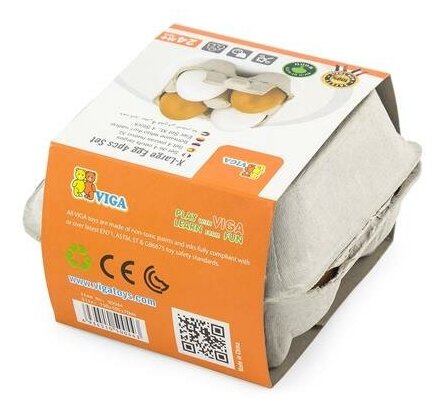 Ваш ребенок интересуется приготовлением еды? Он сможет помогать на кухне взрослым с игрушечными продуктами Viga Toys Деревянные яйца в лотке, 4 штуки. Реалистичный игровой набор с картонным лотком и яйцами из дерева понравится детям преддошкольного возраста от 2 лет. Набор деревянных игрушек поможет развить фантазию и воображение, вдохновит на сюжетно-ролевые игры. Комплект рекомендован для использования в детских садах и центрах развития. Развивающий набор в виде лотка размером 11 х 11 х 7 см и 4 яиц белого и коричневого цветов отлично дополнит игрушечную кухню и посуду. Подражание взрослым и игра в поваров дает детям возможность больше узнать о кулинарии, ведении домашнего хозяйства. Яйца выполнены из цельной древесины, лоток – из спрессованного картона. Все материалы набора – гипоаллергенные, экологичные. Развивающая деревянная игрушка сертифицирована по стандартам качества и безопасности детских игрушек: европейскому EN71, американскому ASTM, как и вся продукция Viga Toys. В комплекте картонный лоток и 4 деревянных яйца.