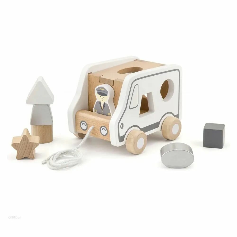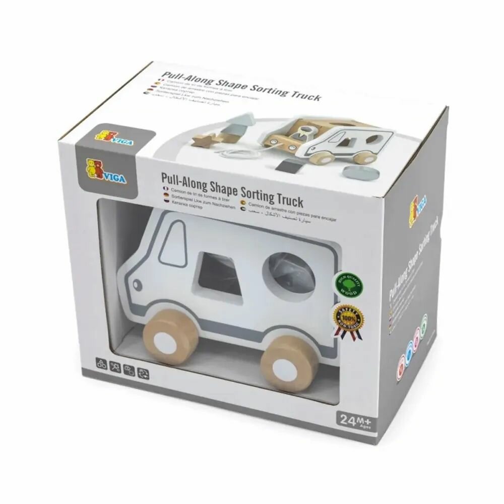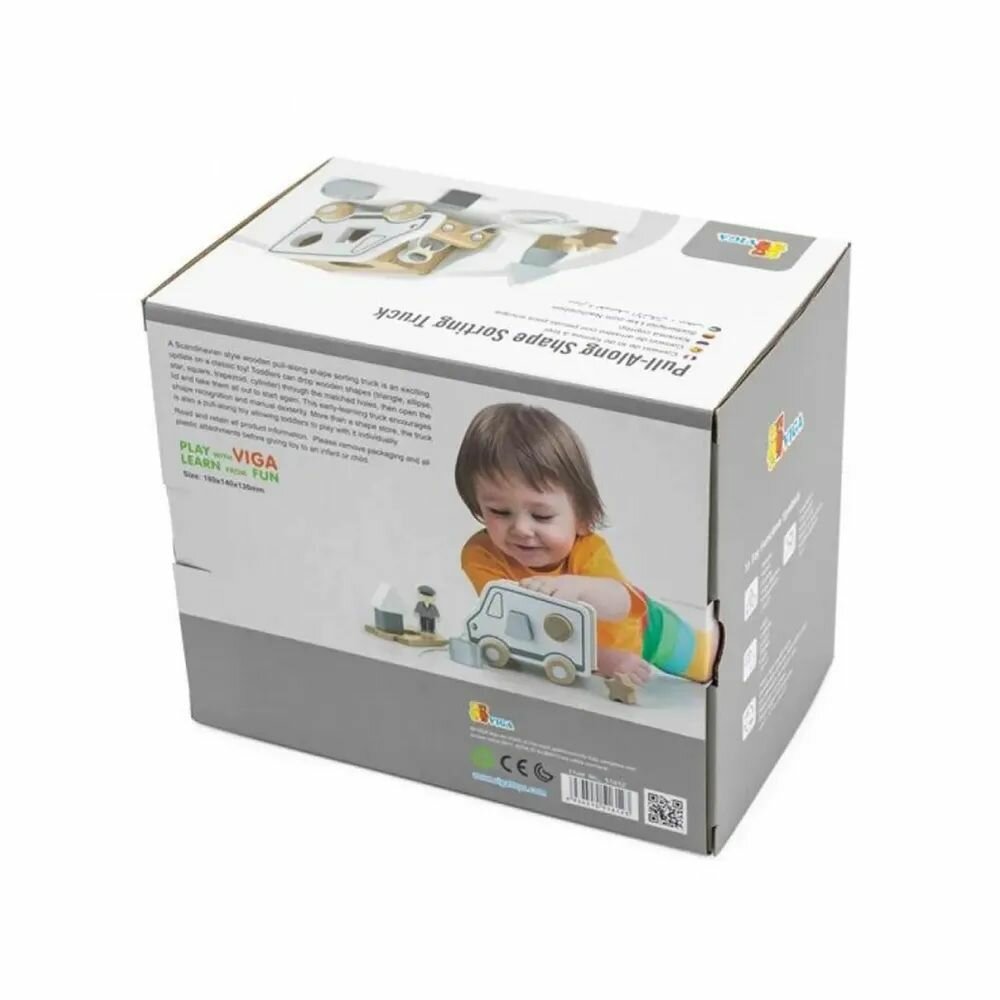 Деревянная каталка-сортер Viga Toys Грузовичок – это развивающая игрушка в современном цветовом исполнении из белых, серых и бежевых деталей.Предназначена для малышей от 2 лет.Подходит для занятий по методике Монтессори.Деревянная игрушка Viga Toys Грузовичок сочетает преимущества сортера и каталки, что делает ее универсальным игровым пособием. С одной стороны, ребенок может проталкивать объемные фигурки (куб, цилиндр, эллипс, звезда) в соответствующие отверстия машинки. Это научит его распознавать формы, поможет развить логику и зрительно-моторную координацию. С другой стороны, у малыша есть возможность использовать игрушку как каталку – возить ее за шнурок. В результате, ребенок развивается не только физически (улучшается координация и двигательные навыки), но и интеллектуально (тренируется воображение и мышление). Благодаря простой цветовой гамме игрушка радует глаз и не перегружает малыша эмоционально.Эта многофункциональная развивающая игрушка приносит огромную пользу не только детям, но и родителям. С помощью деревянной игрушечной машинки они могут дать своим чадам потрясающий материал для развития и с пользой занять их на длительное время.Деревянная каталка-сортер Viga Toys Грузовичок соответствует основным стандартам безопасности и качества детских игрушек EN71 и ASTM. Она изготовлена из хорошо отшлифованной древесины с использованием нетоксичных красок.Размер детской каталки: 16 х 14 х 13 см.