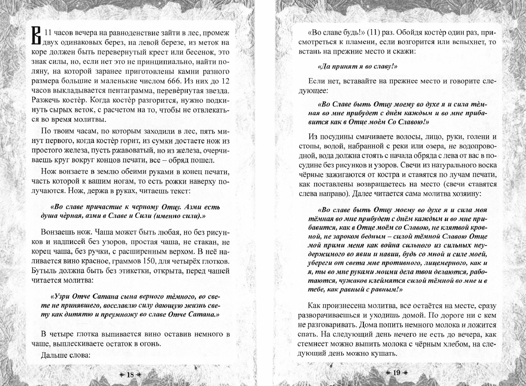 книга очень впечатляет, автор делится практическими магическими практиками , путь левой руки, отём души, посвящение и многое другое , книга снабжена рисунками автора , и полностью состоит из практики , эта книга не для навичков , и я не рекомендую её читать лицам не достигшим 18 лет или лицам страдающих психическими расстройствами , очень много ритуальной магии .