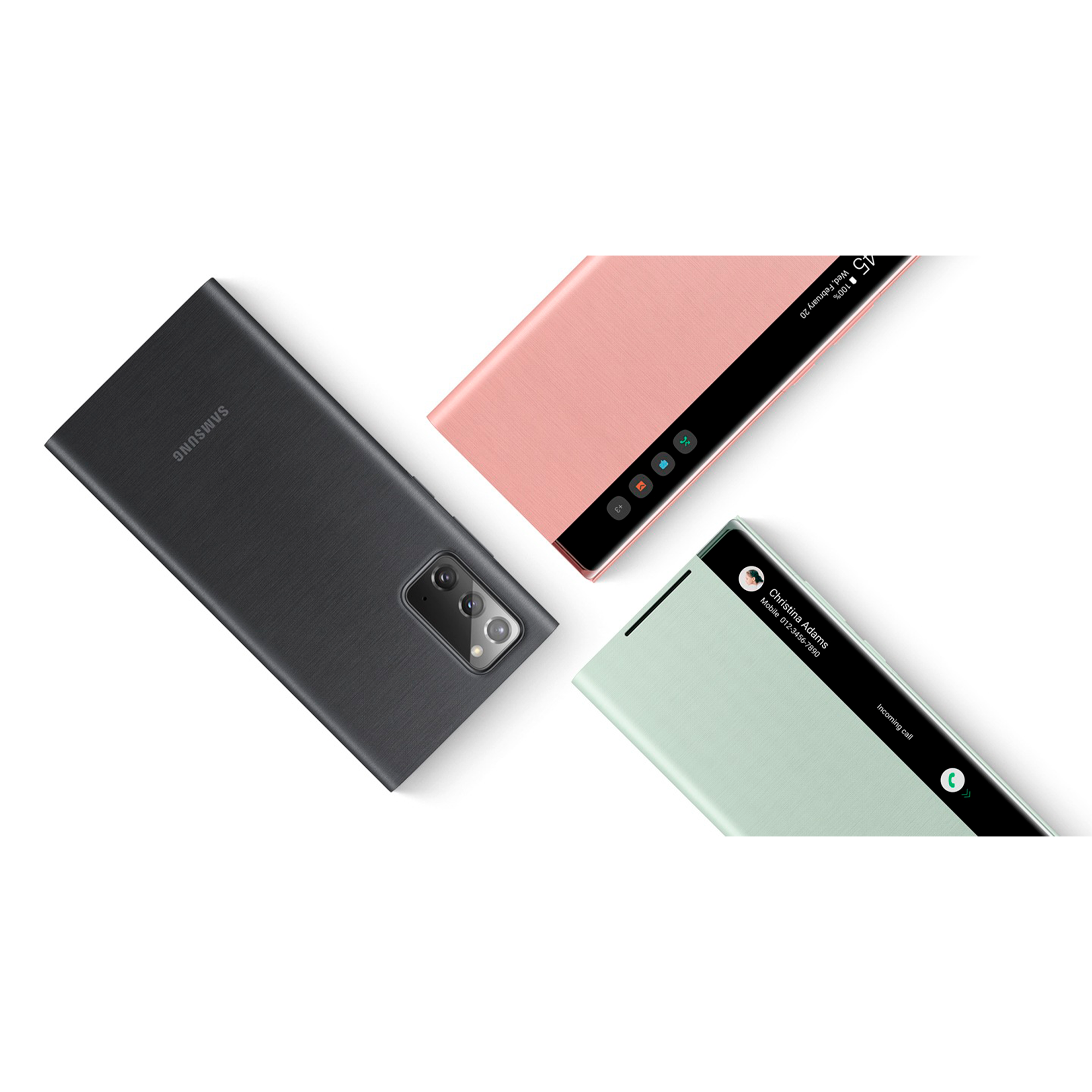 Чехол оснащён специальным интерфейсом, который позволит Вам с комфортом пользоваться Samsung Galaxy Note 20 даже несмотря на закрытую крышку чехла. С помощью него можно отвечать на звонки или завершать их, проверять уведомления и оповещения, мониторить уровень заряда батареи смартфона, управлять воспроизведением медиа и многое другое.