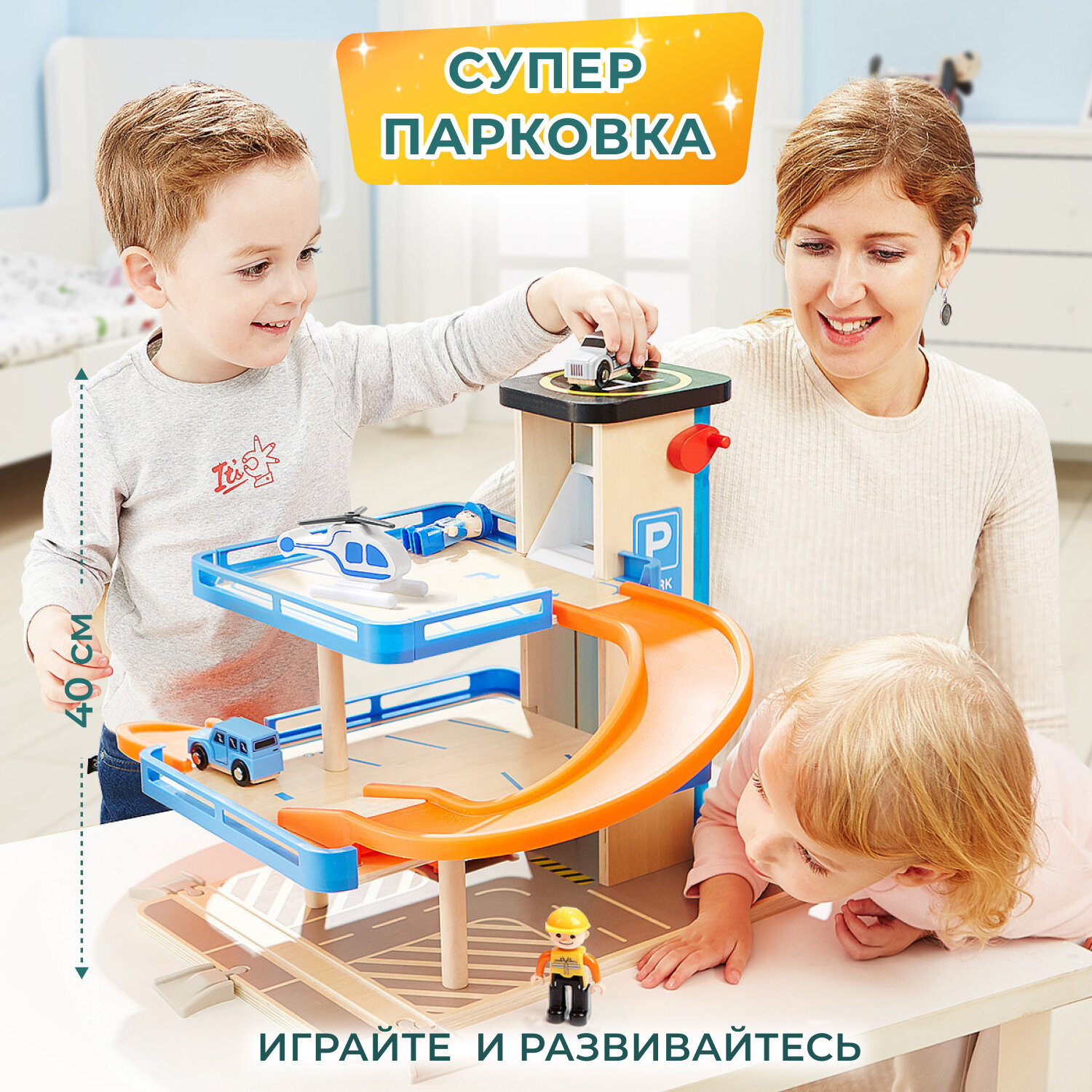 Сервис сравнения цен СкидкаГИД предлагает сравнить цены на товар «Деревянная парковка TOPBRIGHT 3 уровня гараж лифт вертолет 150154 Игровой набор Парковка с лифтом 3 уровня»