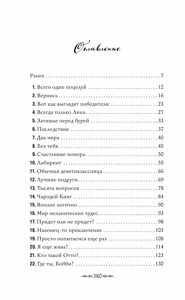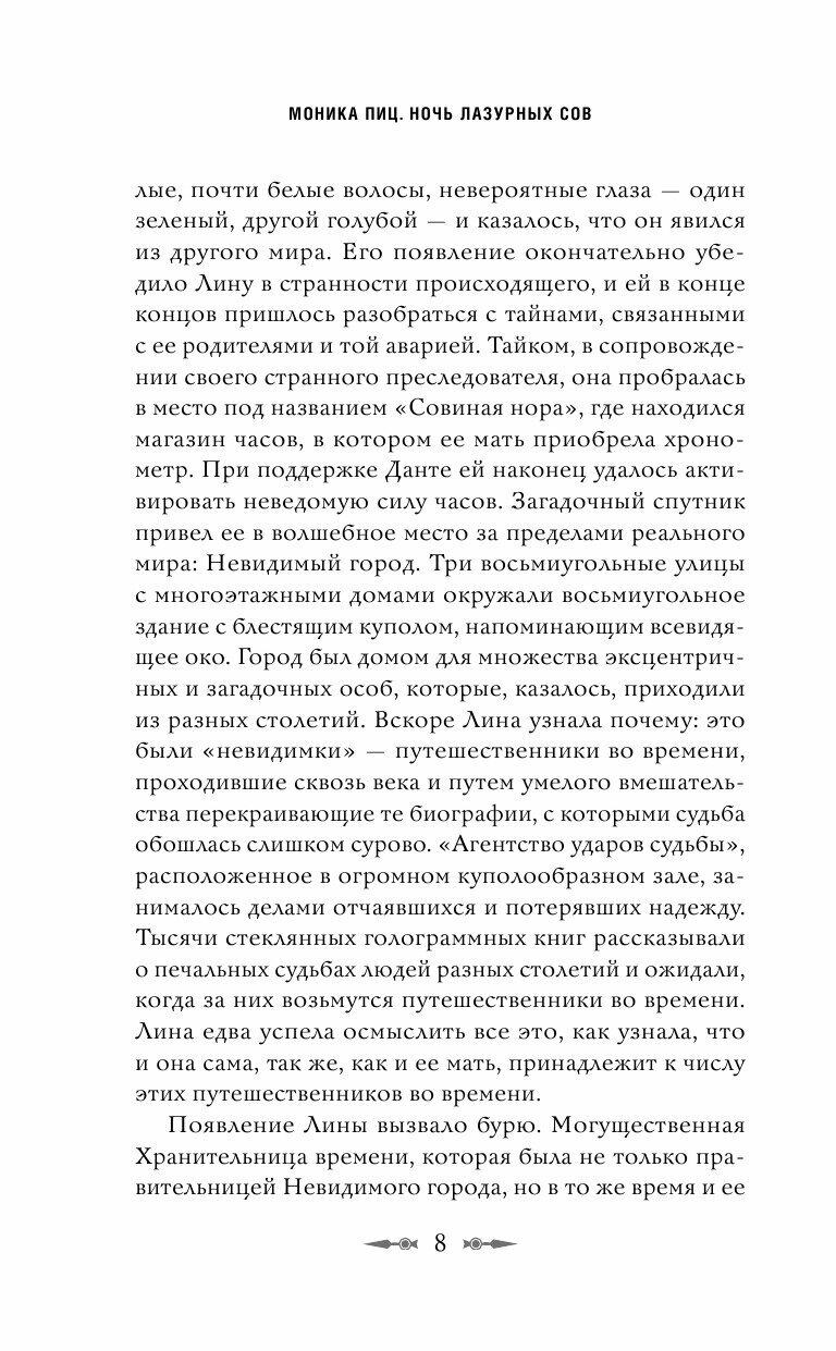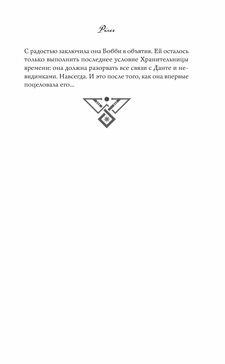 Лине с трудом удается вернуться к прежней жизни: как ей забыть Данте, юношу с разноцветными глазами, пленившего ее сердце? Но связь с ним потеряна, а путешествия во времени вызвали необратимые последствия. Злосчастный хронометр, словно яд, разрушает девушке жизнь. Выход один — уничтожить устройство и навсегда забыть о существовании Невидимого города. Лина решает поручить эту миссию Бобби, но та не упускает шанса испытать силу часов и невольно активирует их механизм. Теперь, чтобы спасти лучшую подругу, Лине необходимо отправиться в далекое прошлое, но на этот раз помощи ждать не от кого, и девушка может полагаться лишь на себя…