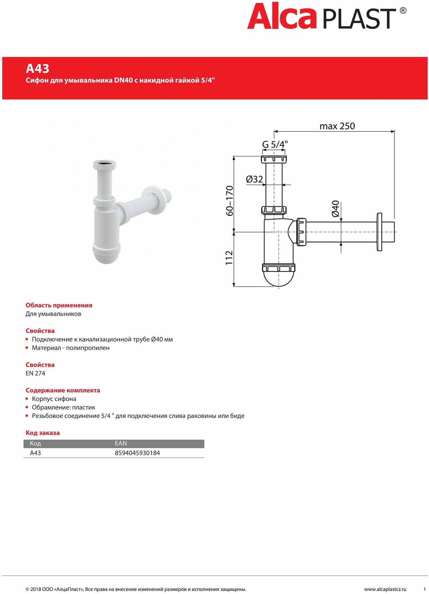 | Комплект поставки | корпус сифона, резьбовое соединение (5/4"), обрамление |