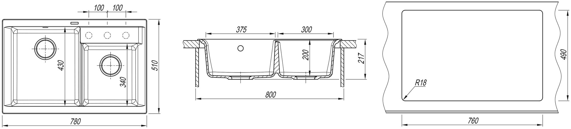 | Отверстия под смеситель | без отверстий,на 1 отверстие,на 3 отверстия,на 2 отверстия |