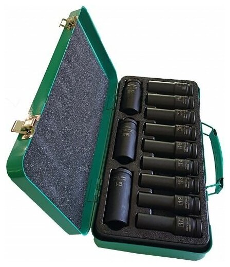 | Описание | Применяются в пневмоинструменте для монтажа и демонтажа колесного крепежа, Профессиональный комплект из 12 предметов 10-24 мм, 1/2", Выдерживает высокие динамические нагрузки, Антикоррозийное покрытие, Для работы в труднодоступных местах, Кейс для удобства хранения |