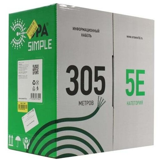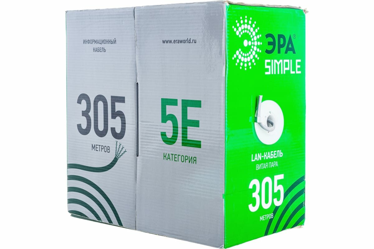 ЭРА Кабель витая пара U/UTP 4x2x25AWG Cat5e CCA PVC 305м SIMPLE 2/30Б0044435