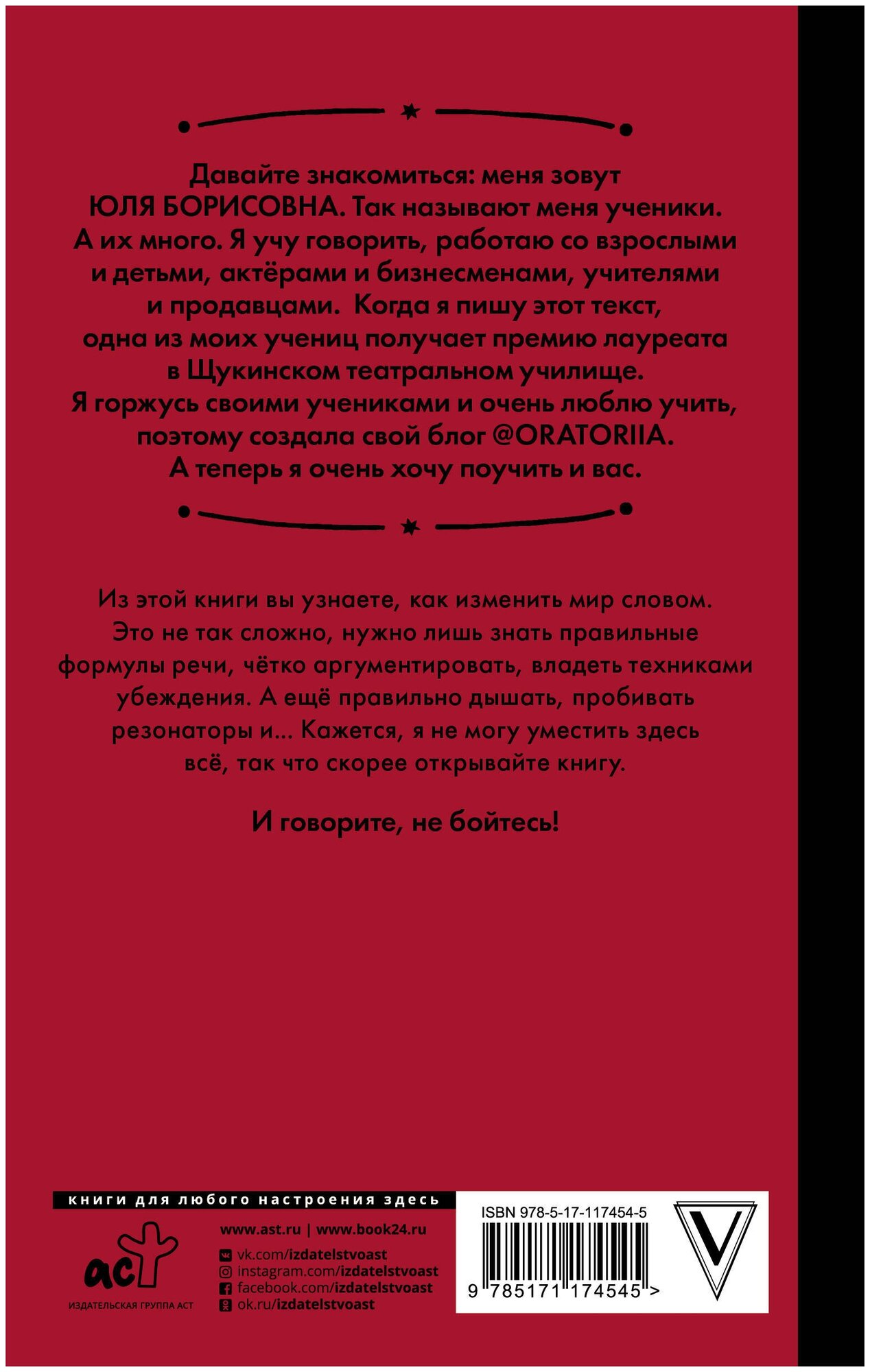 Из этой книги вы узнаете, как изменить мир словом. Это не так сложно, нужно лишь знать правильные формулы речи, чётко аргументировать, владеть техниками убеждения. А ещё правильно дышать, пробивать резонаторы и... Кажется, я не могу уместить здесь всё, так что скорее открывайте книгу. И хватит молчать!