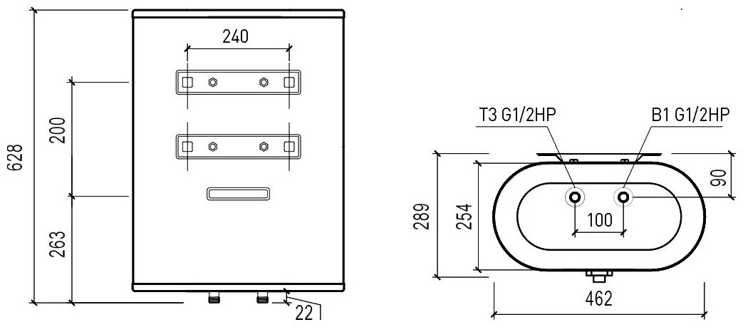 Расстояние от крепежных отверстий до патрубков, мм: 463