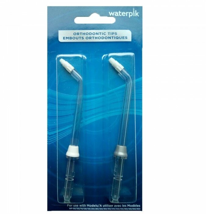 Ортодонтические насадки для ирригаторов Waterpik OD-100E — предназначены для механической чистки брекетов, тщательно очищают замки и дуги. Подходят для ирригаторов Waterpik WP-100 Ultra, WP-450 Cordless Plus и WP-300 Traveler.
