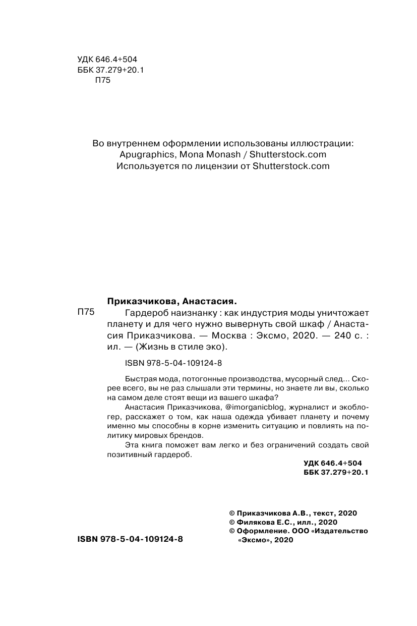 Гардероб наизнанку. Как индустрия моды уничтожает планету и для чего нужно вывернуть свой шкаф (Приказчикова Анастасия); ООО "Издательство "Эксмо", 2020
