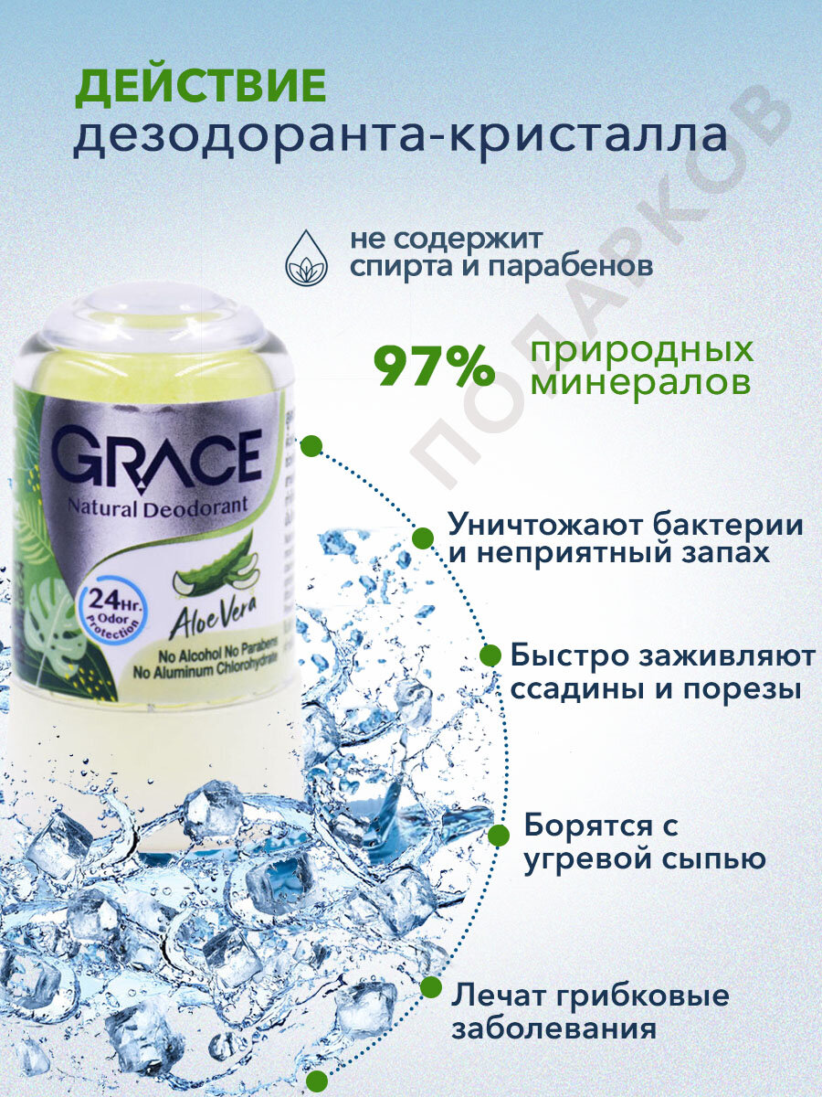 Сервис сравнения цен СкидкаГИД предлагает сравнить цены на товар «Дезодорант кристаллический Grace Алое Вера 70г 10223»
