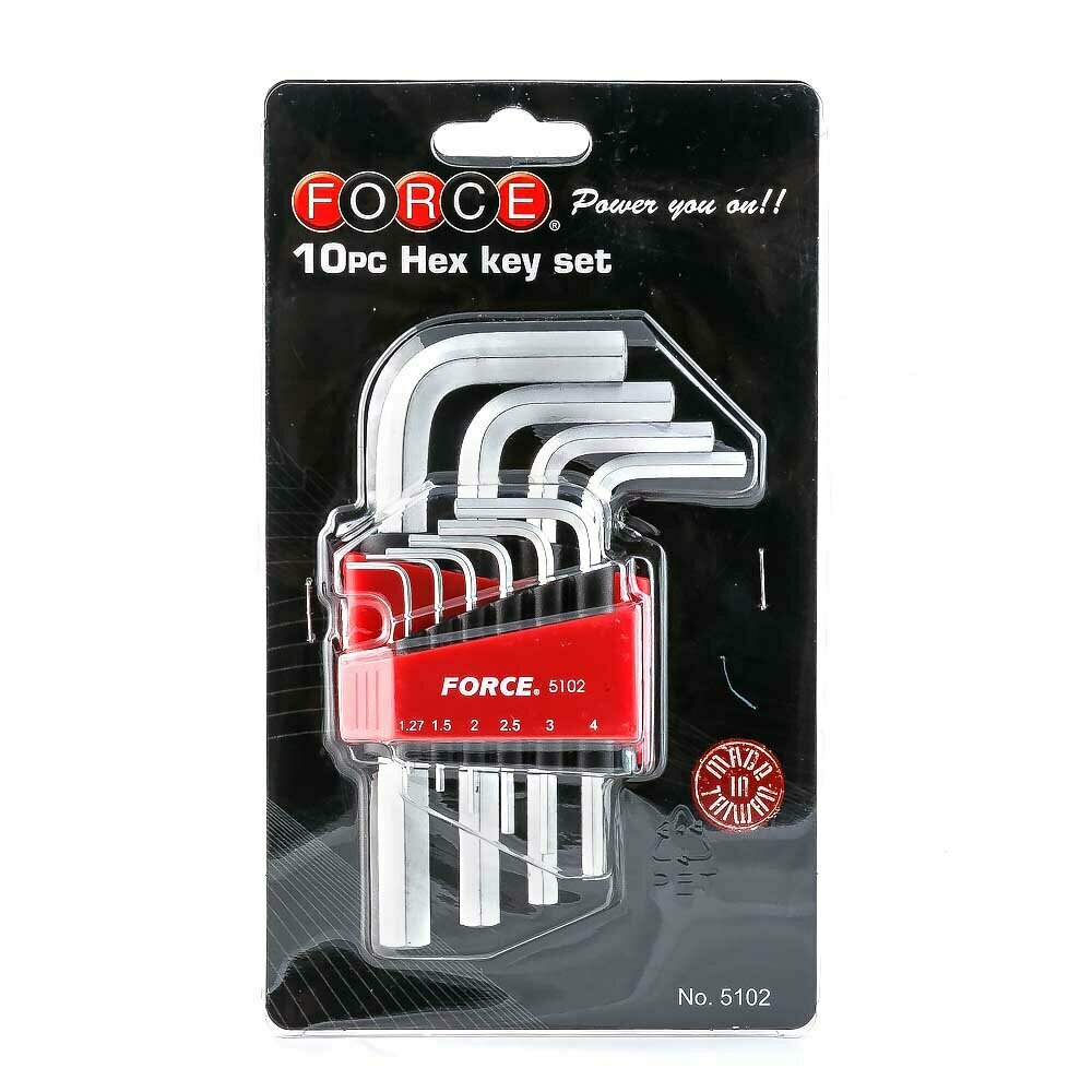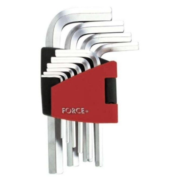 Набор ключей шестигранных угловых (имбусовых) коротких Force для работы с крепежом с внутренним профилем Hex. Набор из 10 ключей размерами от 1,27 до 10 мм.