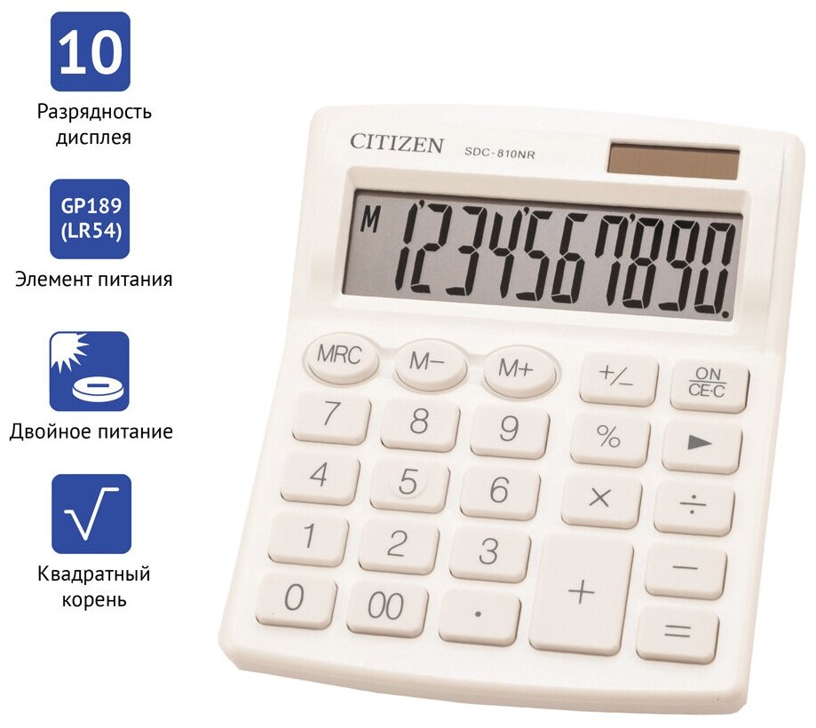 На сегодняшний день товар «Калькулятор настольный Citizen SDC810NRGNE 10 разр. бирюзовый Калькулятор настольный SDC810NRGNE 10 разрядов (размер: 102х124х25 мм)» можно купить с кешбеком в 1 магазине: Яндекс.Маркет