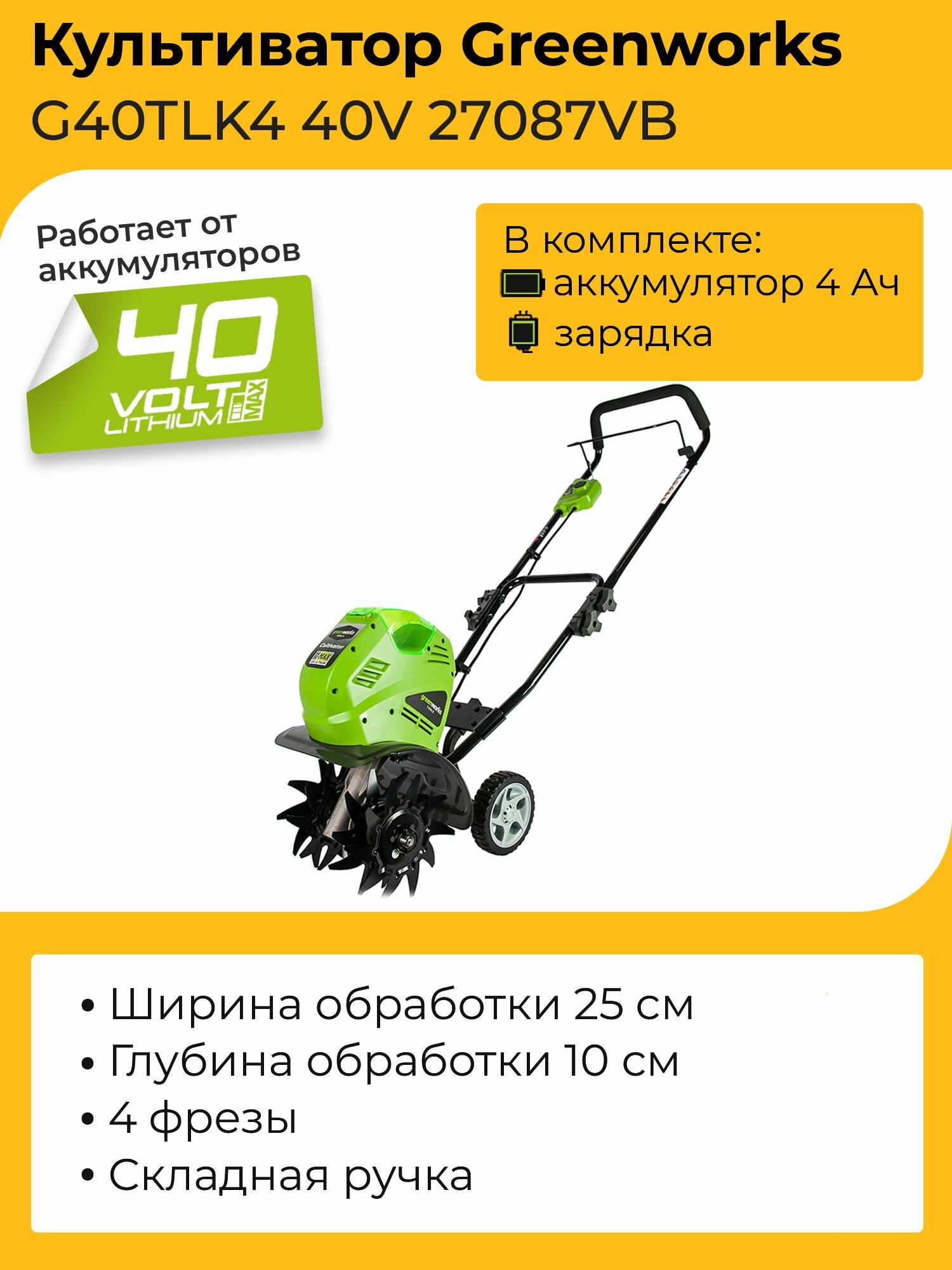 Культиватор Greenworks G40TL 27087VB
