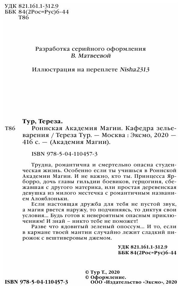 Роннская Академия Магии. Кафедра зельеварения (Тереза Тур); Эксмо, Редакция 1, 2020