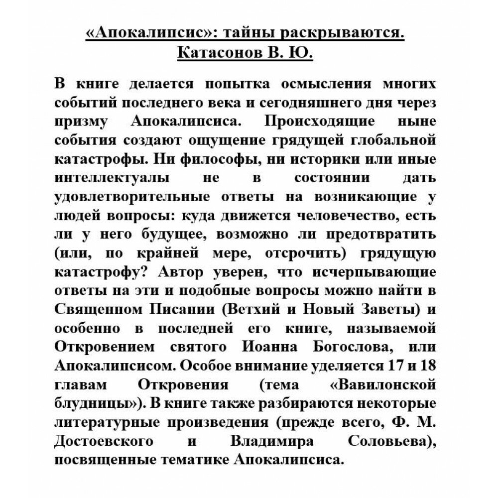Сервис сравнения цен СкидкаГИД предлагает сравнить цены на товар «Книга: «Апокалипсис»: тайны раскрываются (Валентин Юрьевич Катасонов); Кислород, 2020»