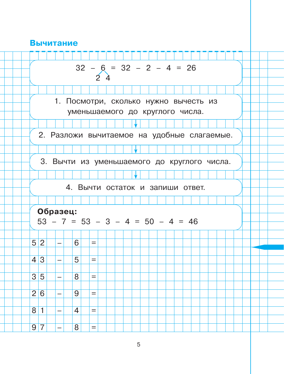 Пособие очень понравилось. Форматом с обычную тетрадь (А5), бумага хорошая, шрифт не мелкий. Вверху каждого листа написана тема предлагаемого задания, например "Сложение столбиком", "Решение задач на кратное сравнение", "Доли", "Виды треугольников", что очень удобно. Думаю, что очень поможет школьникам в закреплении пройденного на уроках материала, так как сейчас в школе на повторение и закрепление времени не отводится в принципе. "Новая тема-контрольная на следующий день -два/три всему классу" - обычная схема. Спасибо, что есть такие пособия, хорошо составленные, простые и понятные.