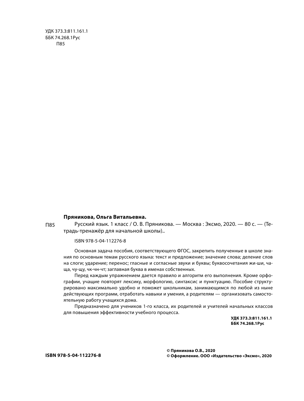 Книга: Русский язык. 1 класс (Ольга Пряникова); Эксмо, Эксмодетство, 2020