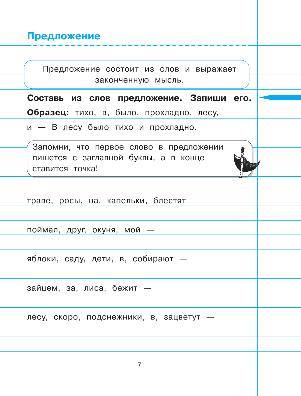 Основная задача пособия, соответствующего ФГОС, закрепить полученные в школе знания по основным темам русского языка: текст и предложение; значение слова; деление слов на слоги; ударение; перенос; гласные и согласные звуки и буквы; буквосочетания жи-ши, ча-ща, чу-щу, чк-чн-чт; заглавная буква в именах собственных.