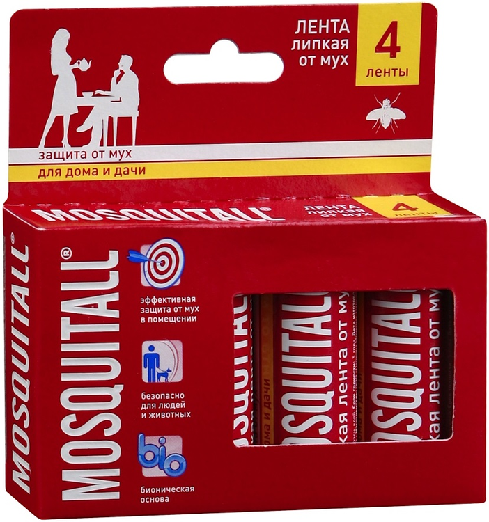Наслаждайтесь спокойствием и комфортом с инсектицидом от мух Mosquitall! Эффективное решение для борьбы с назойливыми насекомыми. Лента липкая, представленная в наборе из 4 штук, быстро и надежно избавит от мух, создавая уютную атмосферу в доме.
