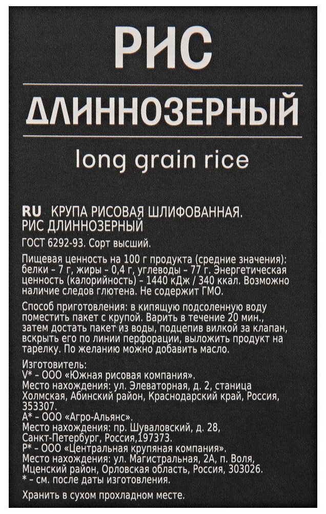 Шлифованный длиннозерный рис пользуется особой популярностью у российских покупателей. Готовый рис рассыпчатый и белоснежный. Порционный рис идеален для гарнира, может использоваться в салатах и супах.