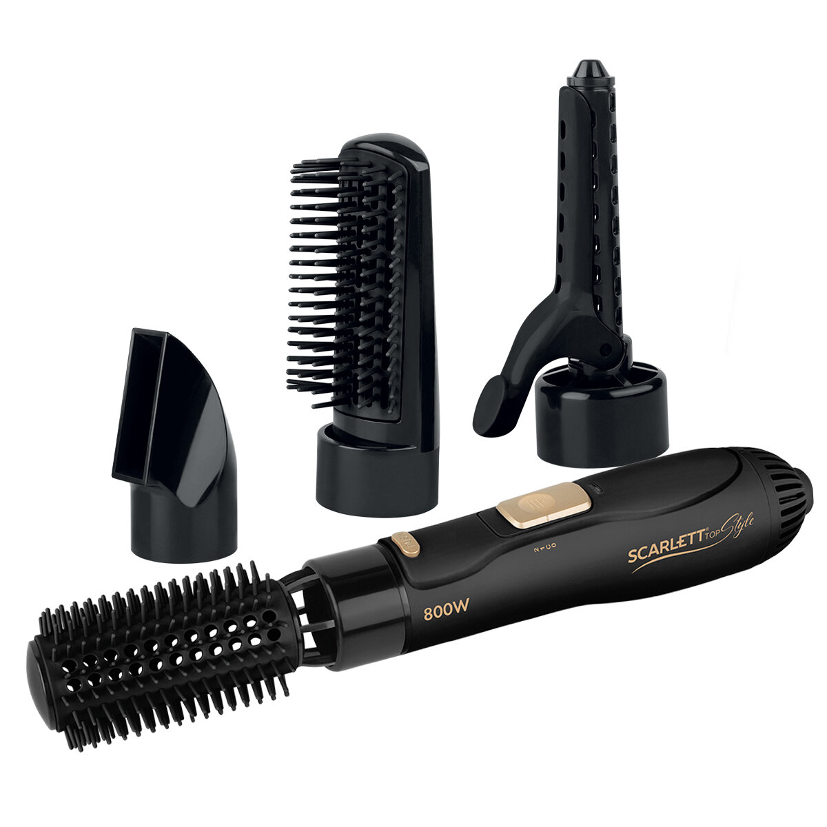 Фен-щётка Scarlett может использоваться для создания самых разных причёсок. Он поставляется в комплекте с набором насадок, предназначенных для выпрямления и завивки волос, а также для придания им эффектного объёма. ИОНИЗАЦИЯ Устройство насыщает волосы отрицательно заряженными частицами, что помогает сохранить их высокую прочность и естественный внешний вид даже при частой обработке. Кроме того, встроенный ионизатор устраняет накопленный статический заряд, не допуская слипания локонов.