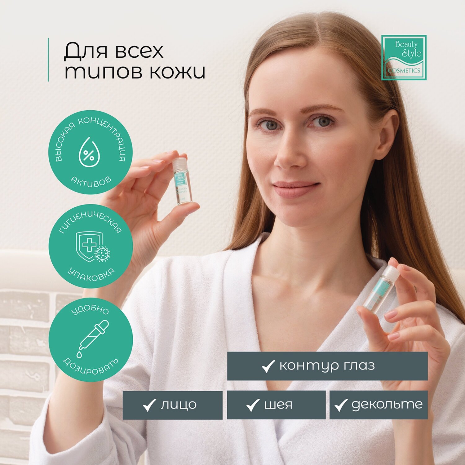 Коллагеновый комплекс сывороточных средств Beauty Style специально разработан для профессионального комплексного ухода за собой. Активная формула сывороток делает комплекс применимым не только для лица, но и в области нежной кожи вокруг глаз. Благодаря активной формуле сыворотки происходит усиление выработки собственного коллагена и эластина, восстановление обменных процессов в коже, улучшение цвета кожи и ее внешнего вида. Удобная упаковка сывороток – ампула с крышечкой – позволяет сохранить остатки сыворотки до следующей процедуры (рекомендуется хранить открытую ампулу в холодильнике).